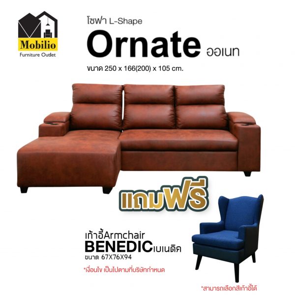 โซฟา L-Shapeรุ่น ” ORNATE ออเนท ” **มีที่วางแก้ว***